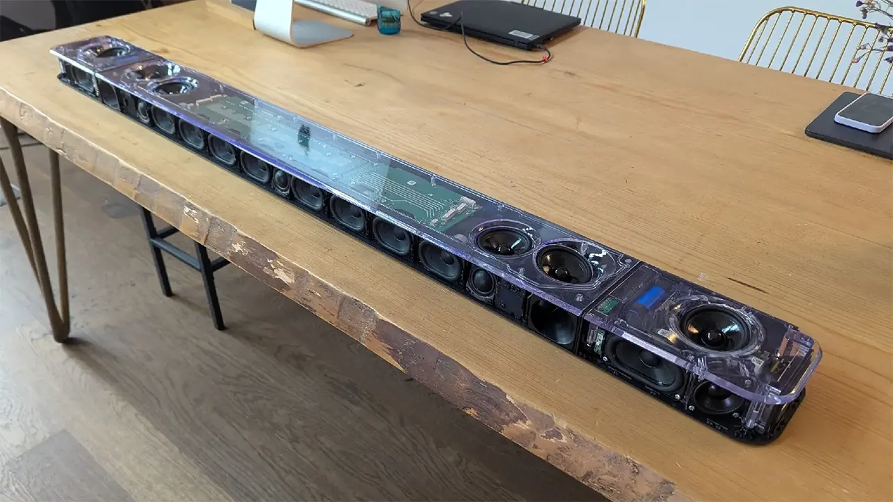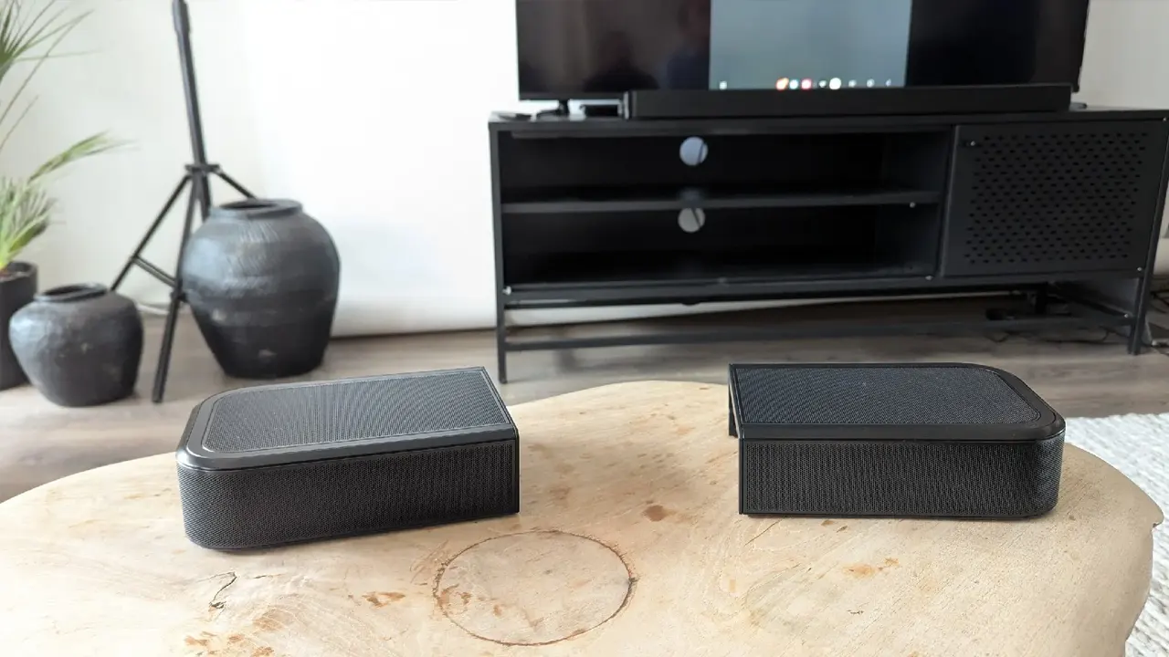 Novi soundbar i subwoofer sada imaju tanji, elegantniji dizajn, postignut upotrebom ovalnih “racetrack” drajvera koji se bolje uklapaju uz moderne ravne televizore. Dvostruki 8-inčni subwoofer uvodi AI Sound Boost — pametni limiter koji automatski prilagođava isporuku snage prema intenzitetu sadržaja. Odvojivi bočni moduli mogu raditi kao nezavisni Bluetooth zvučnici ili kao bežični zadnji kanali, zahvaljujući ugrađenim punjivim baterijama.